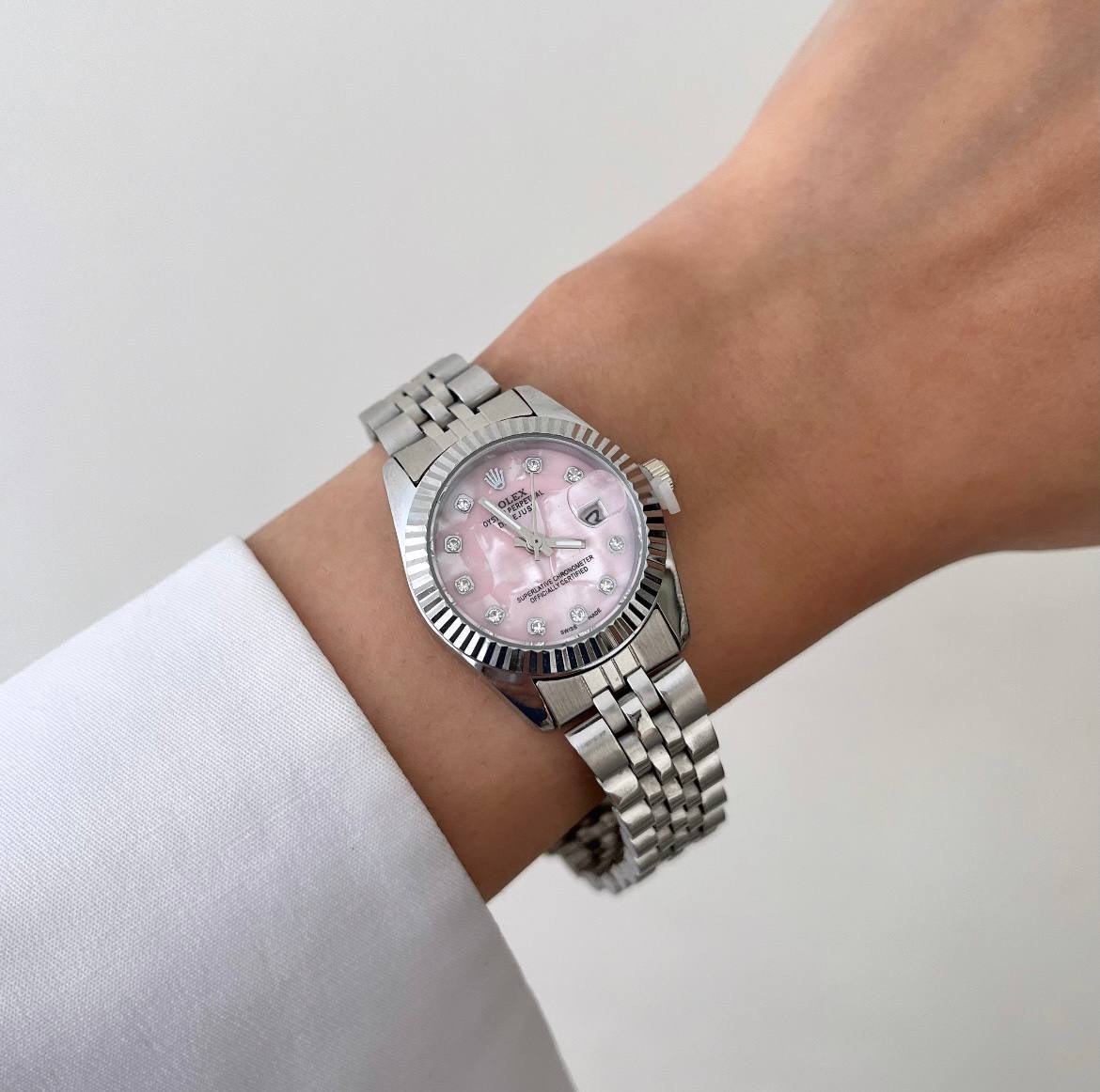 ساعت رولکس زنانه مدل DateJust صفحه صورتی بند استیل ضد آب