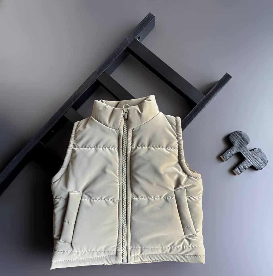 پافر نوزادی کرمی رنگ با زیپ و طراحی مدرن، مناسب استایل و روزمره، راحت و گرم، در فضای مد آنلاین، استایل، همونطور که تو میخوای.