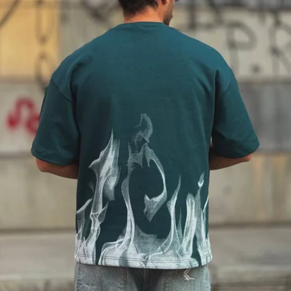 تیشرت اسپرت مردانه مدل FIRE قواره BOX رنگ سبز قواره:…