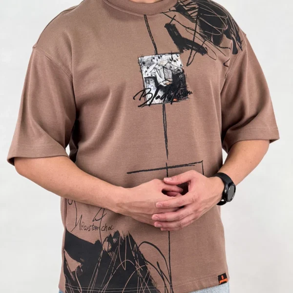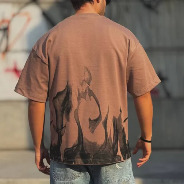 تیشرت اسپرت مردانه مدل FIRE قواره BOX رنگ کرم قواره:…